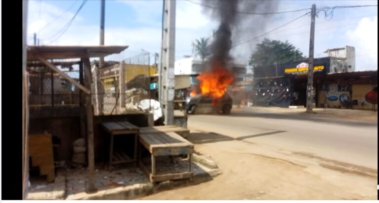 À Yopougon Niangon à gauche, dans l’ouest d’Abidjan, les commerces ont rouvert leurs portes jeudi en fin de matinée après une brève manifestation au cours de laquelle un véhicule de transport avec chauffeur (VTC) a été incendié, à moins de dix jours de l’élection présidentielle, ont indiqué des habitants.