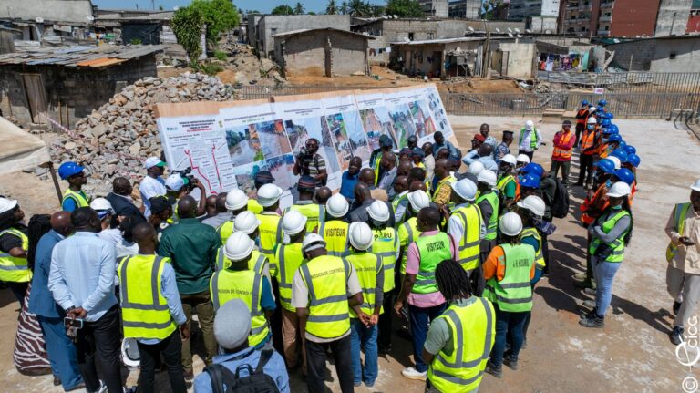 Les chantiers visités concernent les travaux de construction d’ouvrages de drainage des eaux pluviales dans les bassins de la Riviera-Bonoumin (Cocody) et le projet d’assainissement et de drainage de Yopougon-Maroc, dont le taux d’achèvement est de 90%.