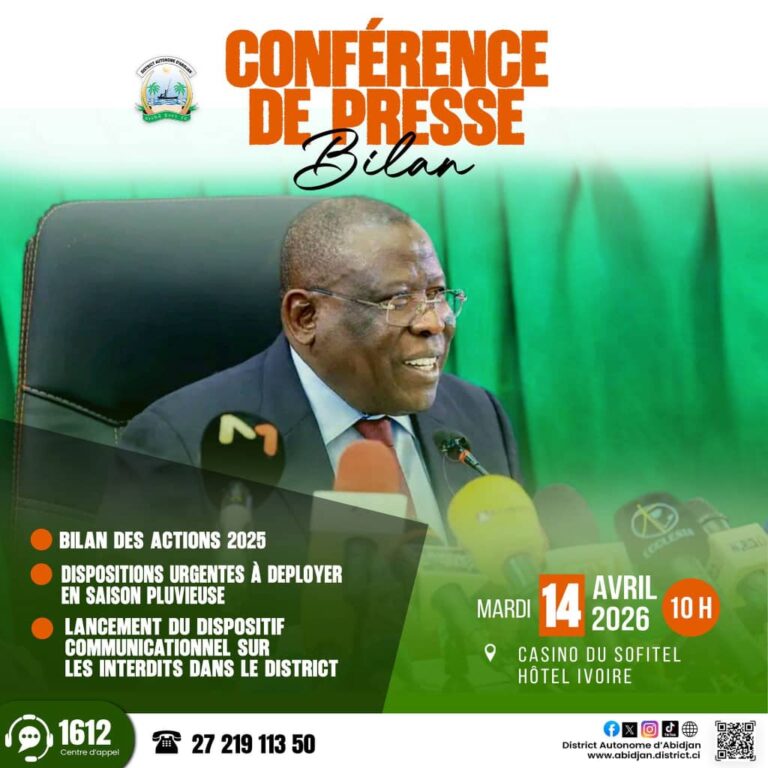 Le Ministre gouverneur du District Autonome d’Abidjan a animé une conférence de presse le mardi 14 avril 2026 à Abidjan à l’hôtel Sofitel Hôtel Ivoire .