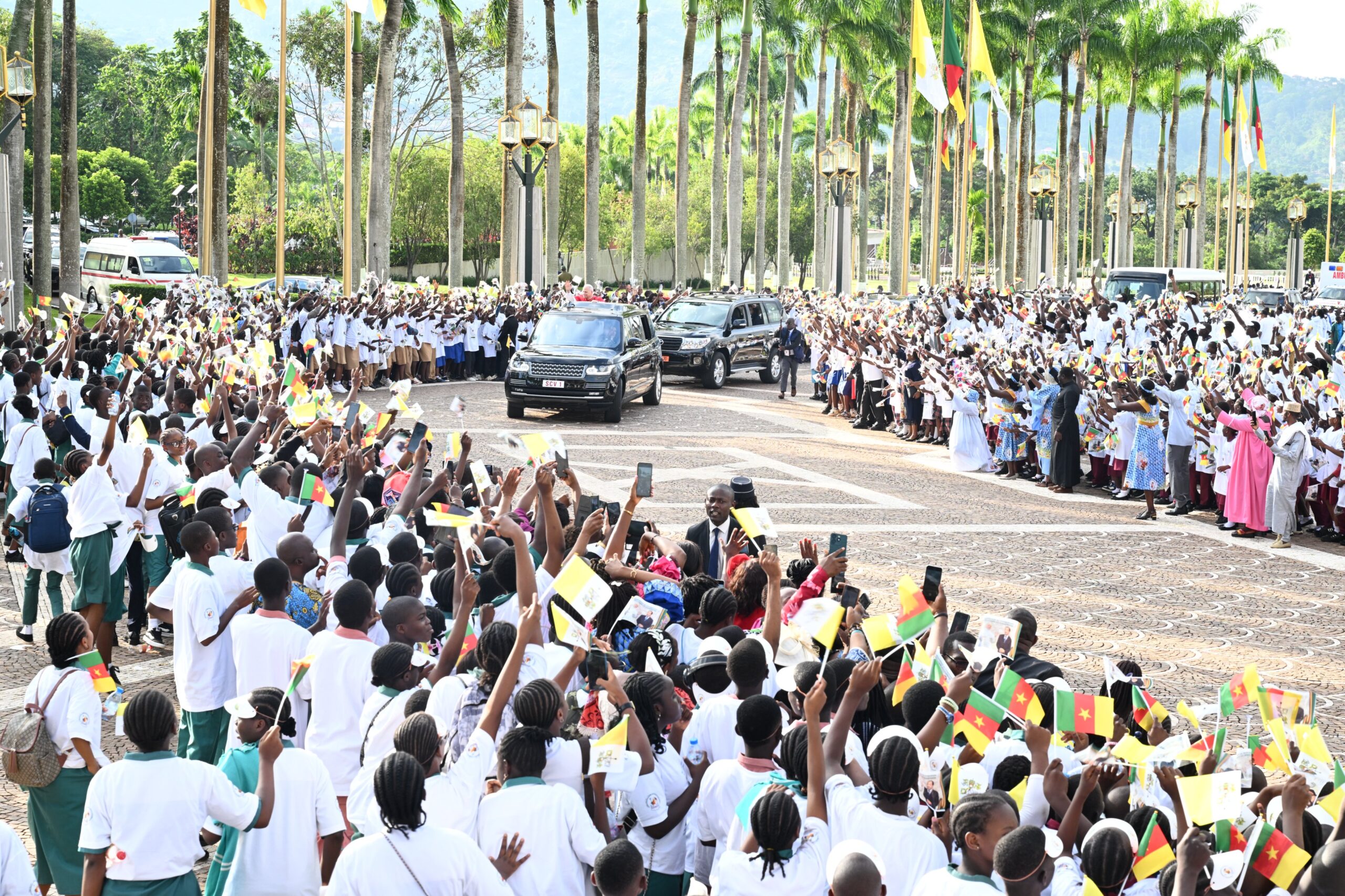 Le pape poursuit désormais sa visite à Douala, capitale économique et principal port du pays, après une étape particulièrement sensible à Bamenba, en zone anglophone. Cette région, en proie à des tensions persistantes et à des revendications séparatistes, concentre toutes les attentions.