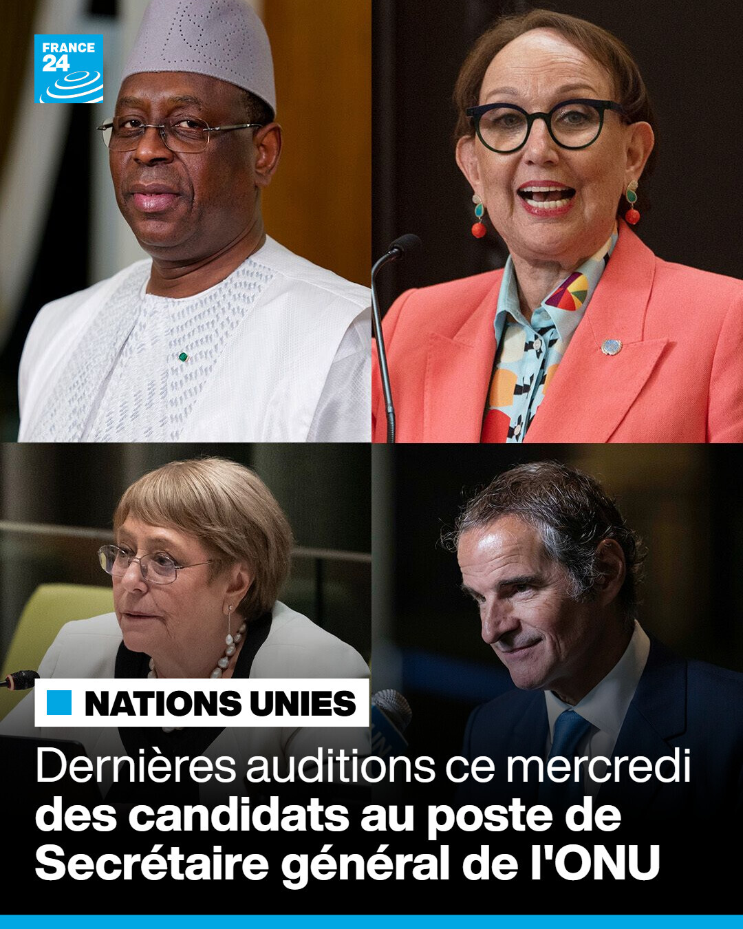 Au moment où la crise au Moyen Orient fait rage, l’élection du futur secrétaire général de l’Onu occupe une place de choix dans l’actualité mondiale. Qui de Macky Sall, Rebecca Grynspan, Michelle Bachelet ou Rafael Grossi sera élu à la tête de l’ONU ?